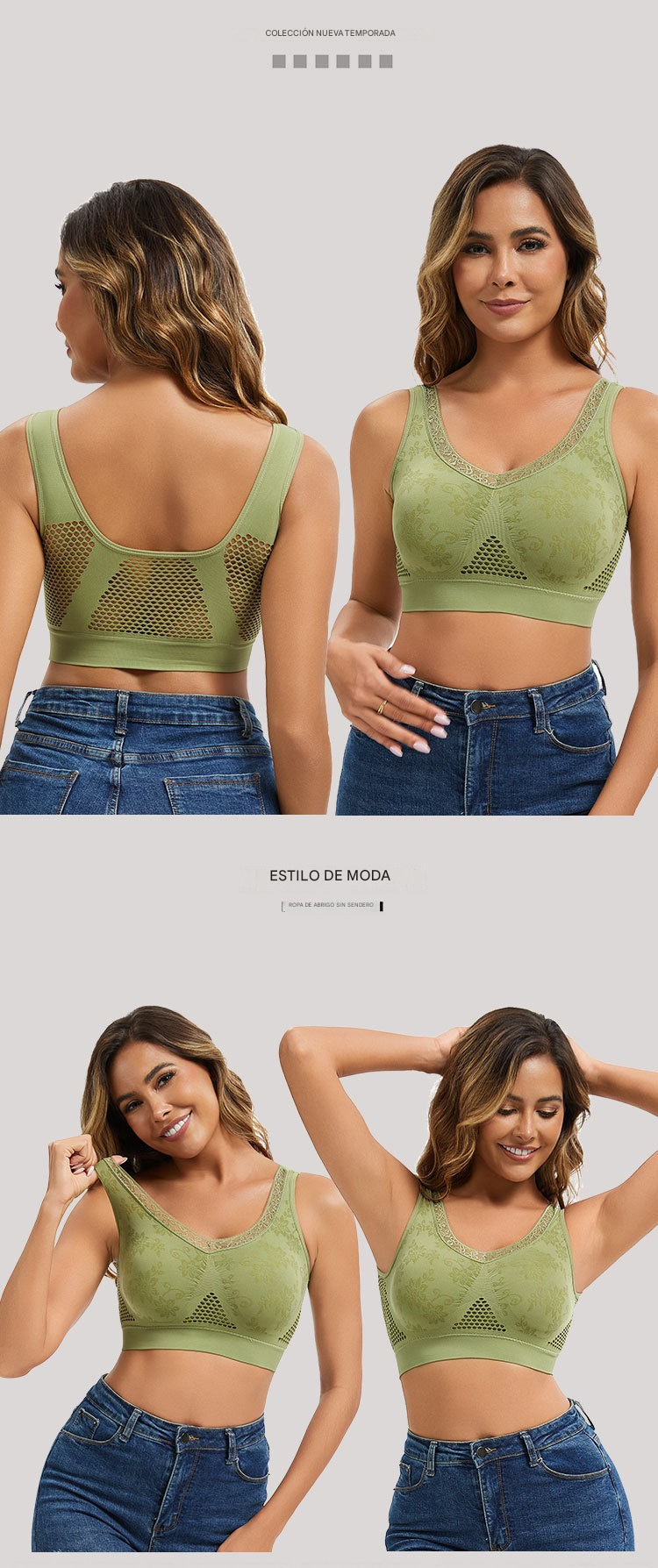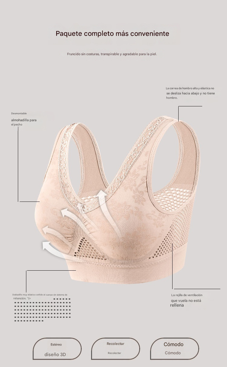 šā¤ļø40-120 kgćPaquete de 3ćāØSujetador de encaje sin aros para mujer, alta sujeción-E