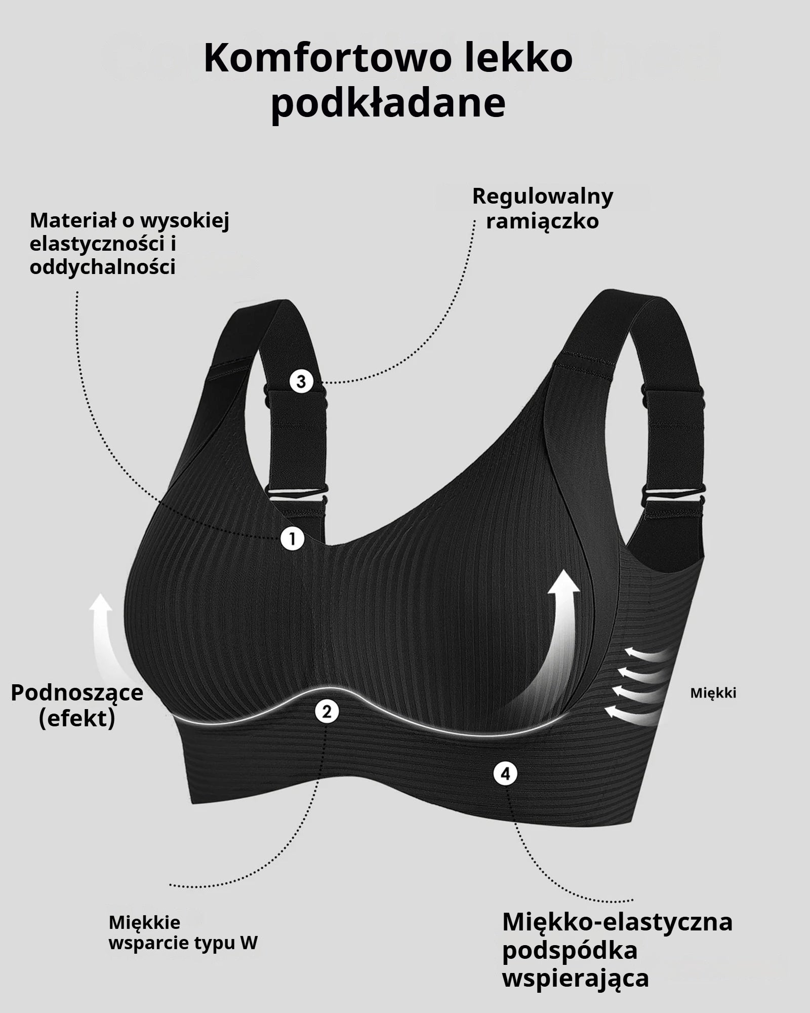 😍【Zestaw 4 szt.】Bezszwowy biustonosz bez fiszbin dla kobiet ❤️【40–95 kg】