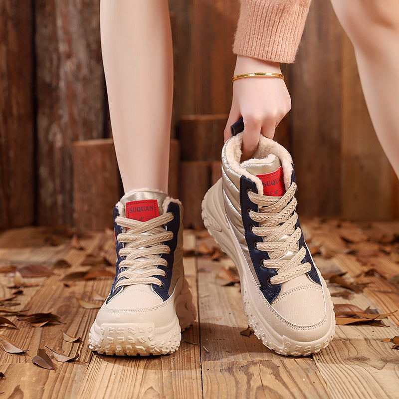 【35-40】 Zimowe, grube, aksamitne, wysokie śniegowce na grubej podeszwie